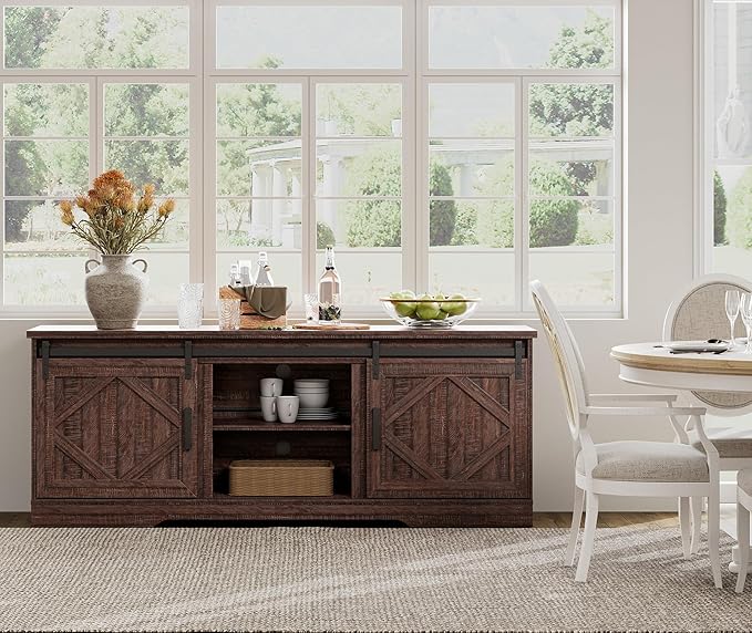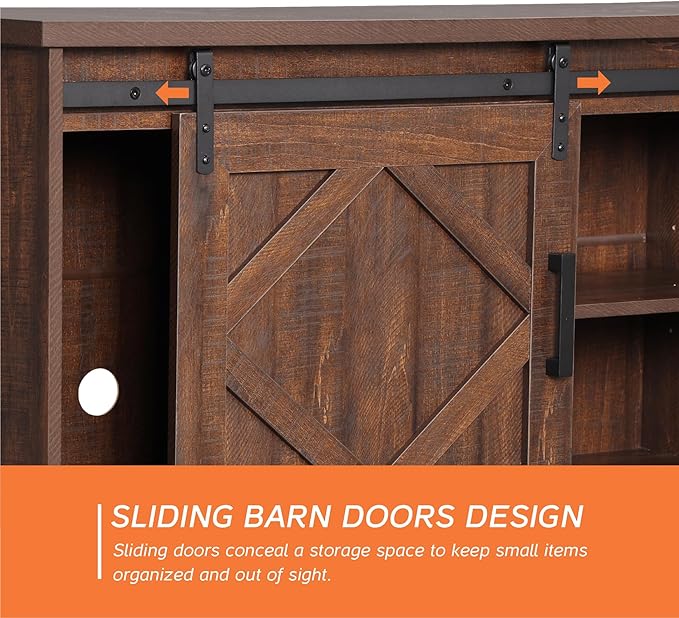 WAMPAT Modern Farmhouse TV Stand for TVs up to 75 inch with Sliding Barn Door,Wood Entertainment Center with Adjustable Media Storage Shelf for Living Room, Rustic Brown