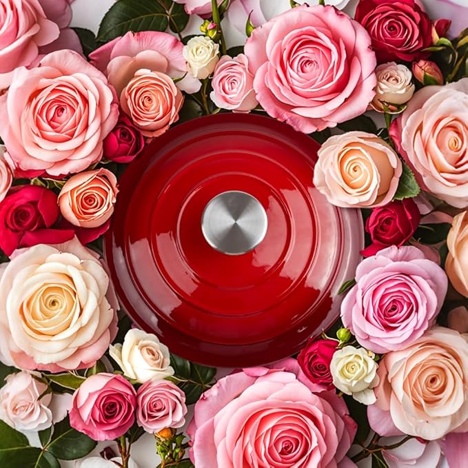 - This Dutch Oven from durable cast iron, the tight-fitting lid helps seal in heat and moisture, preserving the natural flavors and tenderness of your dishes.The enamel coating on both the interior and exterior provides added durability, prevents rusting, and makes it easy to clean.Cast iron is also a long-lasting material that can withstand years of use, reducing the need for frequent replacements and minimizing waste.