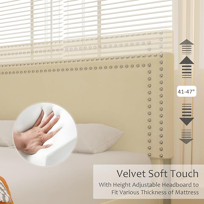 - [ADJUSTABLE HEIGHT] - The headboard comes with 4 height adjustable mounting positions from 41'' to 47'', suitable for any thickness and material mattresses. Under bed clearance provide extra storage space,also can clean easily.