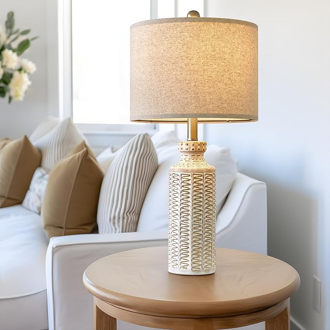 - Farmhouse Living Room Lamp:This farm house table lamps designs with a line pattern ceramic lamp body and linen fabric lampshade. This lamp not only looks classic and retro, but also creates an elegant atmosphere in your house. It is suitable for modern style, minimalist, Nordic, and so on(Please note that the lamp shade needs to be assembled)