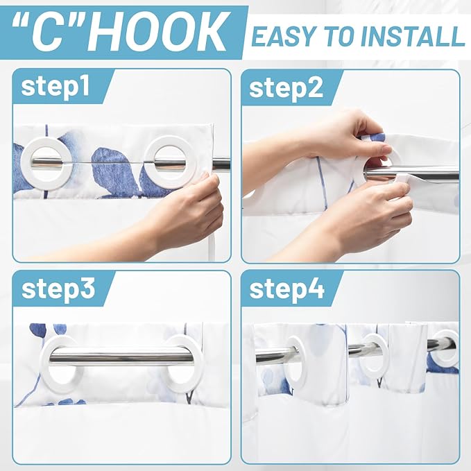 - No hooks needed! This shower curtain designed with "Split Rings" that let you hang them easily, Suitable for various home decor