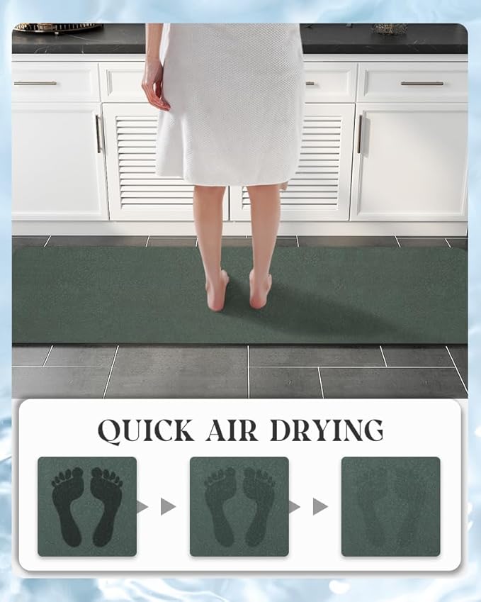 - ABSORBENT :This is a soft version of the diatomaceous earth bath mat. The bathroom rug can suck up dripping water when you come out from bathtub or shower.Faux suede surface dry quickly.Always keep your bathroom clean and tidy