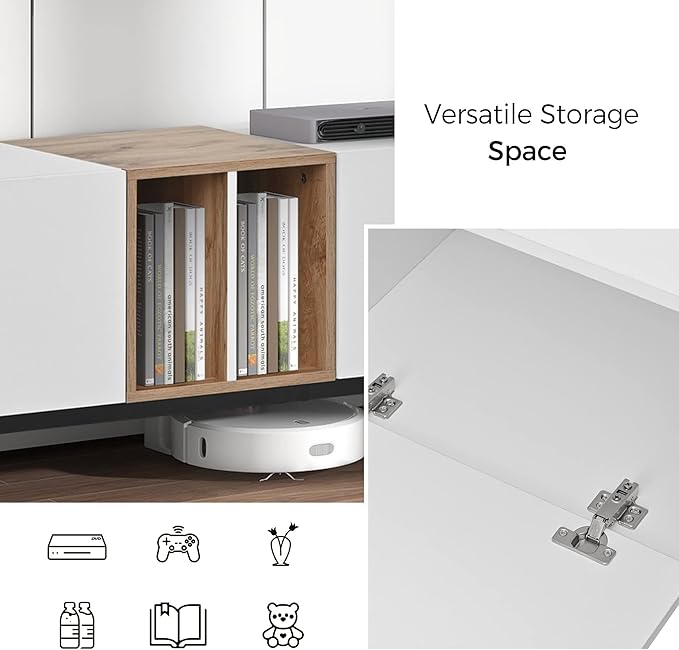 Merax Modern TV Entertainment Center with 3 Cabinets & Open Shelves, Wood TV Stand for TVs Up to 80” for Living Room Bedroom (White)