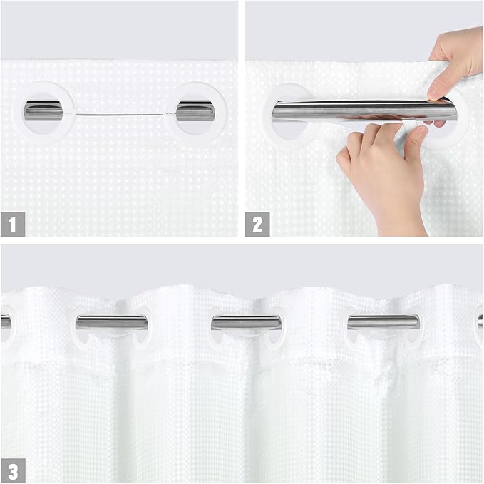 - Easy Care - The shower curtain with snap in liner set can be machine or hand washed to keep it clean. Just toss the white shower curtain in washing machine for washing.