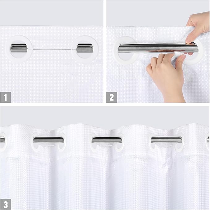 - Easy Care - The shower curtain with snap in liner set can be machine or hand washed to keep it clean. Just toss the white shower curtain in washing machine for washing.