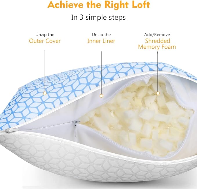 - Adjustable Firmness: Compared with traditional one-piece memory foam pillow, the Love Attitude shredded memory foam pillow is is designed to satisfy stomach sleepers, back sleepers and side sleepers’ different needs, you can ADD or REMOVE foam filling to suit your size, shape or sleep position.