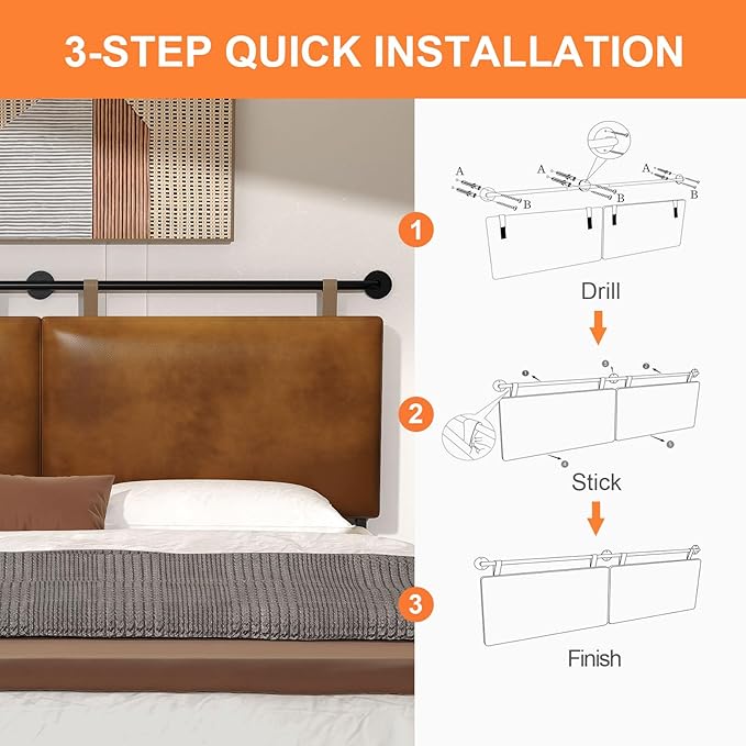 - Friendly Reminder: Wall Mounted Headboard is suitable for flat, clean and dry walls or surfaces. Need to drill holes to install headboard pole ( Not Included bed fame Only headboard )