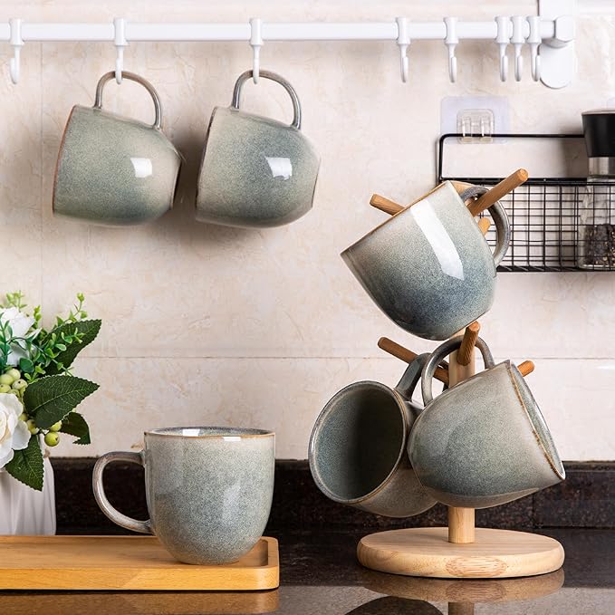 • UNIQUE DESIGN: Our mugs feature a hand-finished reactive glaze that creates a beautiful, one-of-a-kind look. The color variations add to the charm and character of each piece, making them a stunning addition to any kitchen or dining room.