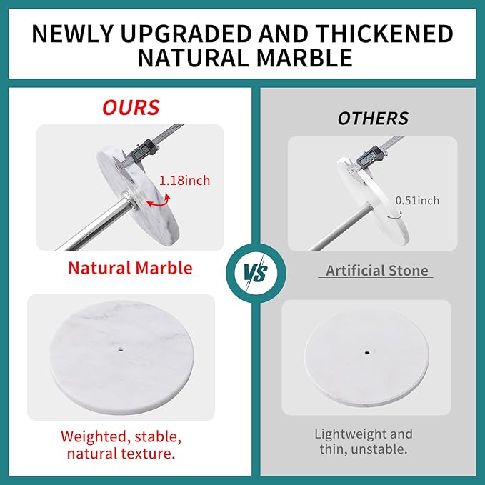 - THICKENED NATURAL MARBLE BASE: OIRUMIE coat rack base stand is made of 100% natural marble. The diameter of the marble is 11.81 inches, The thickness of the marble is 1.18 inches, which is stable and not shaking. The coat racks are convenient for storage and easy to clean