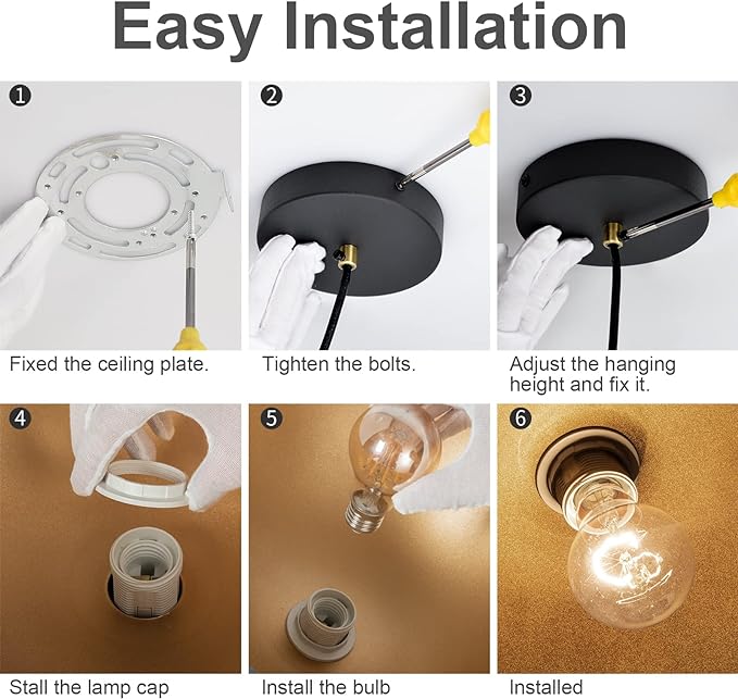 - The installation steps are very simple. The open design of the dome lampshade makes it easy to replace bulbs. Widely used to create a retro atmosphere for kitchen islands, bedrooms, living rooms, restaurants, garages, and porches.