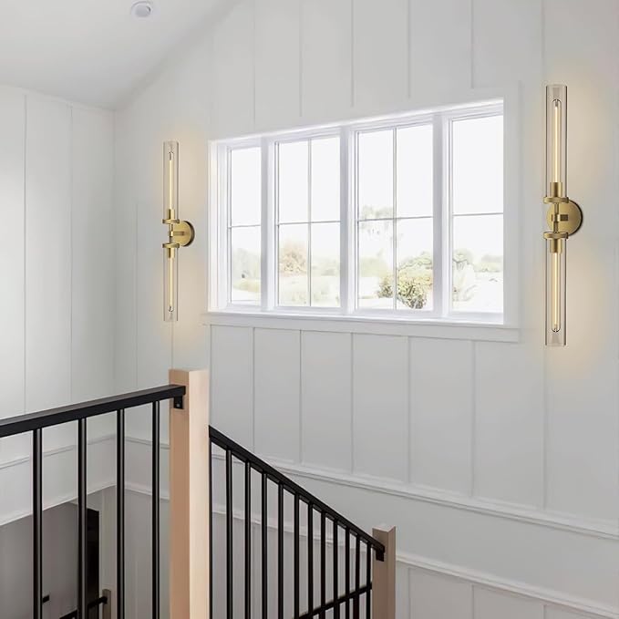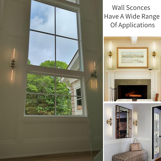 - INCLUDES BULBS & UL LISTED: The Brass Sconce comes with long E26 bulbs in the box. The light bulb of the Hallway Wall Sconce can be dimmed between 0 and 100 with a dimmer(not included). The copper metal part of the Bathroom Vanity Light is coated with a layer of antioxidant material, which will effectively prevent the Tube Wall Sconces from corroded and prolong the service life.