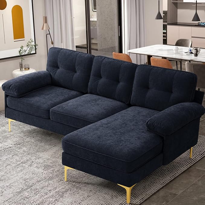 EASELAND 82" L-Shape Sofa with Reversible Chaise Lounge, Convertible Sectional Sofa Couch, Chenille Modern Sofa Couch for Living Room, Apartment and Office, Removable Cover (Dark Blue)