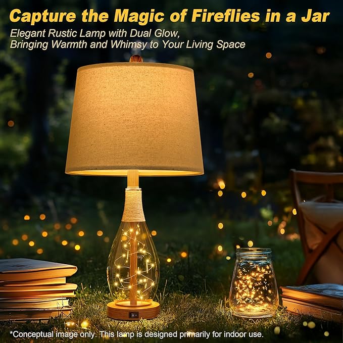- For Your Loved One: Unique glass table lamps, linen fabric lampshades and high-quality resin wood lamp holders add a romantic and warm atmosphere to your living room, rattan wrapped design on the modern table lamp holder and the glass lamp body of the drip-shaped built-in nightlight make the lamp even more unique.