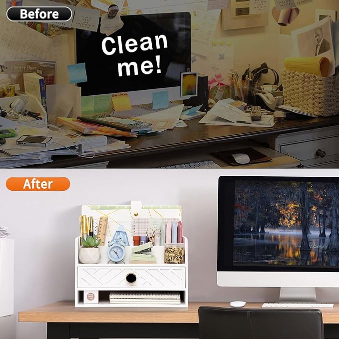 - EXQUISITE APPEARANCE: This white desk organizer has a modern and elegant appearance design, which can help you and your family eliminate the troubles of daily clutter. It can help you create a designated workspace that is both functional and aesthetically pleasing