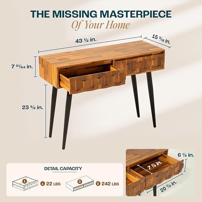 - BUILT TO LAST: Crafted from solid wood and metal legs and adjustable levelers, this wooden hallway table ensures stability, offering a lasting addition to your home