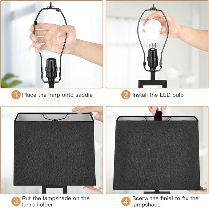- 💡 ️Easy to Assemble & Fabric Shade: The exquisite fabric shades of the table lamps are made from high-quality materials, ensuring they are durable and long-lasting. The black lamps are designed to be easy to assemble, and emits comfortable lighting that creates a warm and relaxing ambiance at home. The bedside lamps will be an ideal choice for home decoration as well as a perfect Christmas, birthday, anniversary, and other festival gifts!