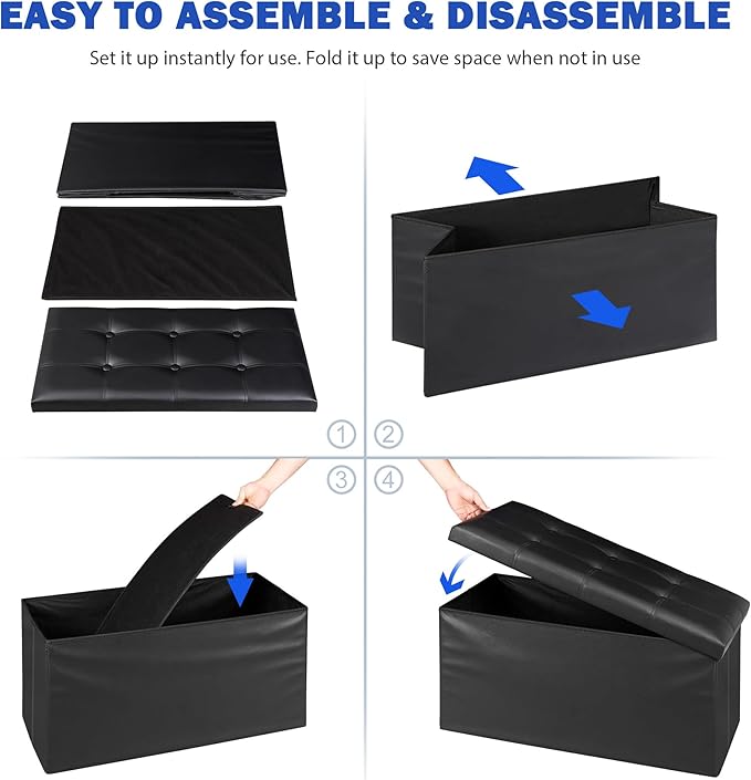 - 【Easy to Assemble & Service】The item consists of three components: a lid, a fold-out storage ottoman, and a base piece designed to be placed at the interior bottom of the ottoman. No tools needed. It is like opening a collapsible box, you just open it up and may takes you about 2 minutes to assemble.