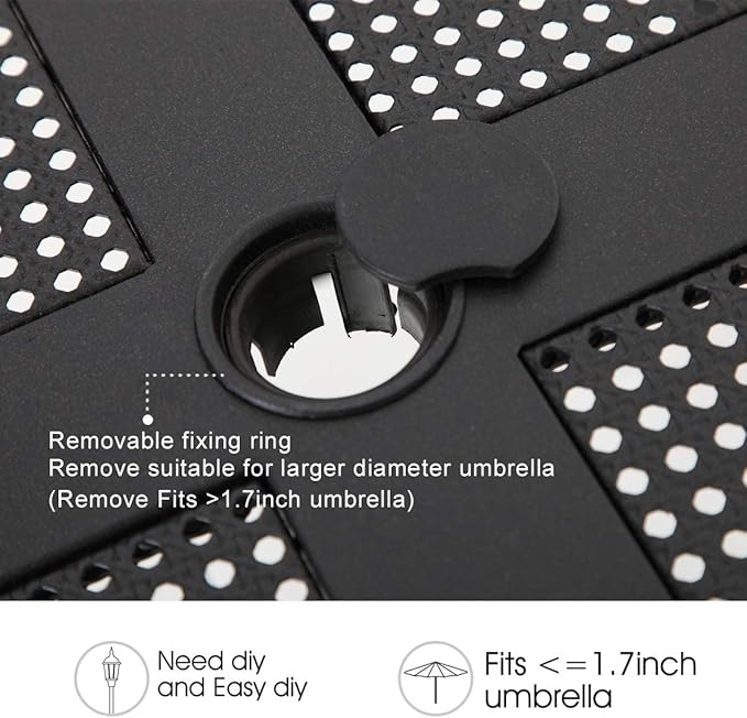 - Square Metal Dining Table: Made of all steel material, processed with ecoating layer, which is rust and weather resistant. Skid resistant feet for uneven ground and against floor scratching. Mesh design table top comes with umbrella hole, more practiacl for outdoor dining. Dimension: 37L x 37W x 28H, with 1.57” umbrella hole.