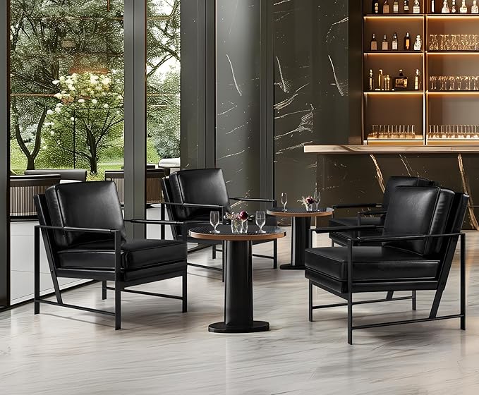 Yaheetech PU Leather Armchair, Retro Leisure Accent Chair with Extra Soft Padded and Cushion, Modern Reading Arm Chair with Black Metal Frame for Living Room/Office/Bedroom/Study Black 2 PCS
