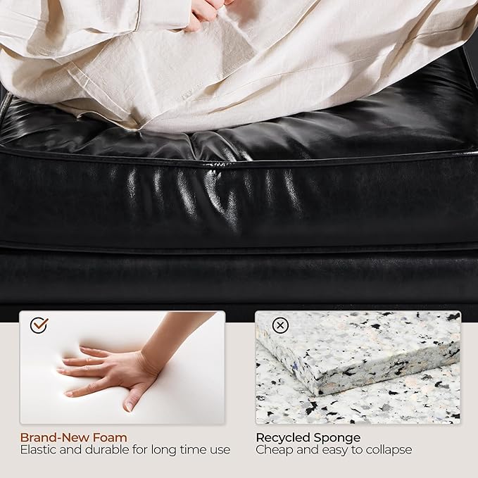 - Ultimate Relaxation: Featuring a 22’’ Wx18.7’’ D cushioned seat and medium height backrest, this faux leather accent chair provides you a larger sitting area and ultimate comfort. The low-profile design not only allows you to lounge comfortably, but creates a casual feeling that invites you to sit in for hours.