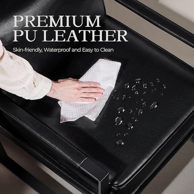 - Sturdy and Durable: Sold in a set of 2. Each lounge chair is crafted of an engineered wood & solid wood frame and reinforced with extra metal side legs, which is sturdy and stable enough for years of use. The whole seat is fully covered in quality PU leather. Its good water resistance leaves you no worries about spilled drinks. Once soiled, just spot-clean it with a damp cloth.