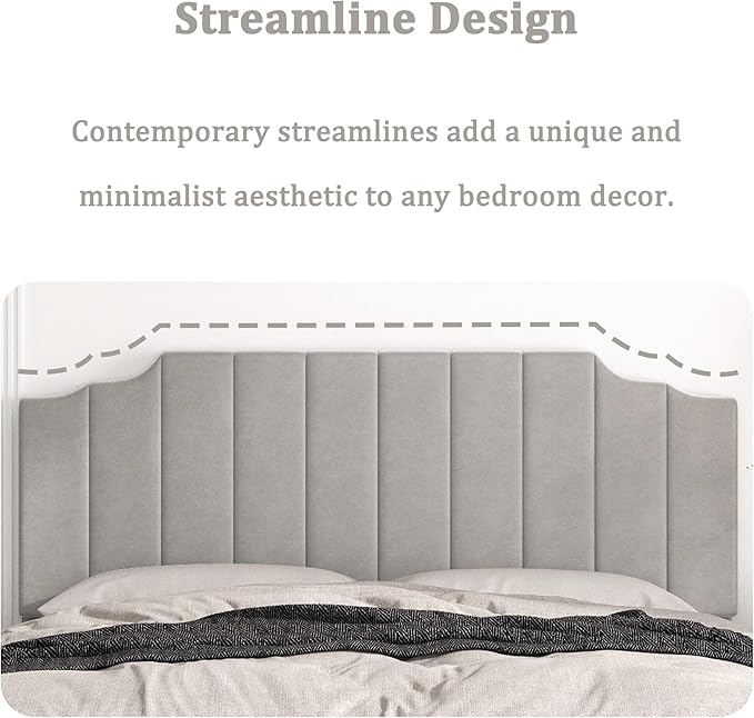 King Size Headboard Only, Velvet Wall Mounted Headboard King for Adjustable Bed Modern Upholstered Head Board Easy Assembly, Gray