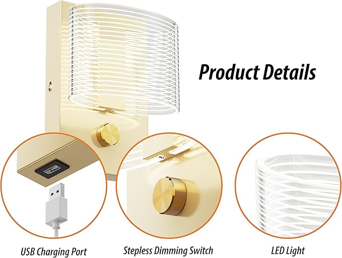 - [USB Charging Port] Wall Sconce provides power to devices via USB charging port. Power output of 5V/2.1A 10W.