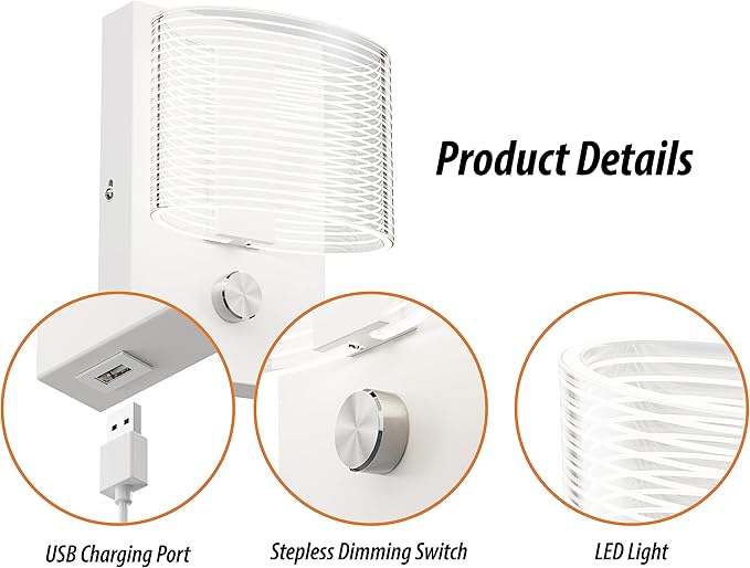 - [USB Charging Port] Wall Sconce provides power to devices via USB charging port. Power output of 5V/2.1A 10W.