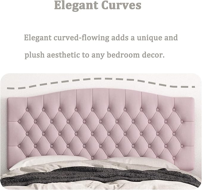 - MODERN DESIGN: This headboard queen size with hand-pulled tufted button and united style legs, and fine details such as soft smooth touch and curved-flowing elegant top adds a unique and plush aesthetic to any bedroom decor