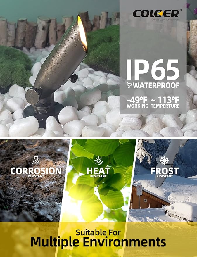 - Replaceable Bulb: The COLOER mini landscape spotlight uses a design with separate light fixture and bulb, which offers a longer lifespan compared to the non-detachable integrated design. You can replace the bulb without having to replace the entire fixture just because the bulb is broken. COLOER landscape lighting offers a lifetime warranty on the light fixture(painted finish is 10 years) and a 5 years for the LED bulb.