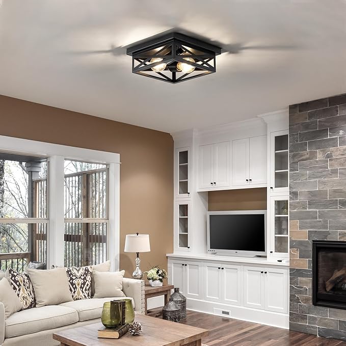 - Farmhouse Flush Mount Ceiling Light Fixtures: Rustic kitchen Light Fxtures use multi-layer paint process, rust and corrosion resistance, open metal cage design that allows the exposed bulbs to shine brightly and gives out 360° illumination lights up the whole room. Hallway lights fixtures, Metal Cage Design, add a vintage industrial style touch to your house