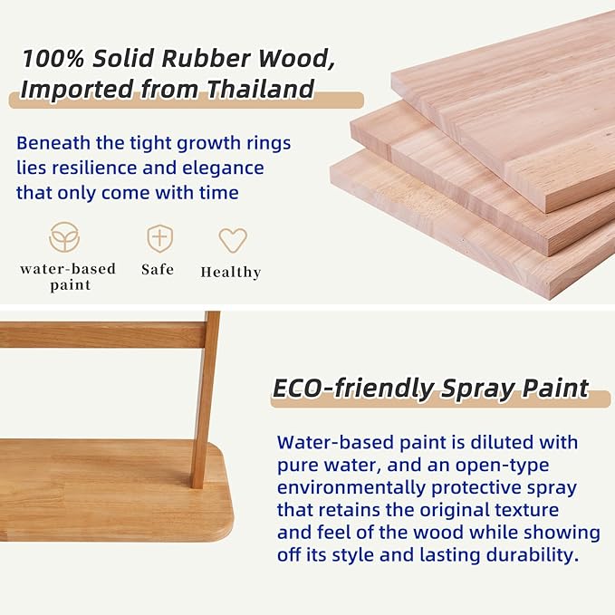 - STABLE AND STURDY: The coat rack is made of solid rubber wood, with base size 54x28x2.5cm that is thick and heavy duty, make sure sturdiness with load-bearing 8 lb each hook, 20 lb for top rod and 22 lb on main rods' top
