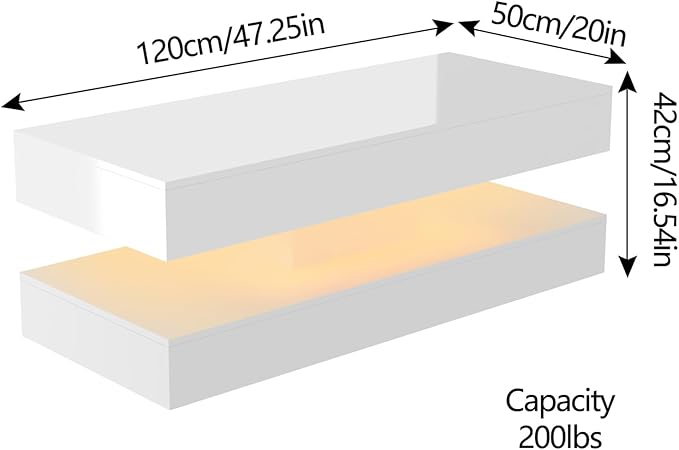 Uspeedy 47.3IN High Glossy LED Coffee Table,APP LED Lights,Black/White, Modern Furniture for Living Room (White)