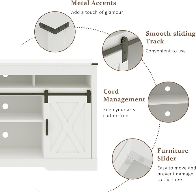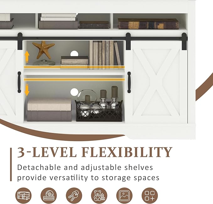 Farmhouse White Stand for TVs up to 65+ Inch Tall Entertainment Center with Sliding Barn Door, Console Storage Cabinet for Bedroom, Living Room