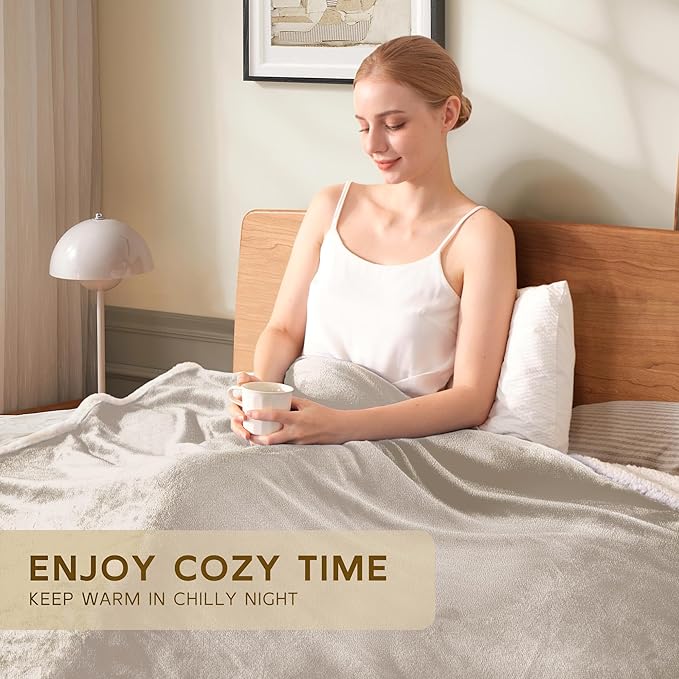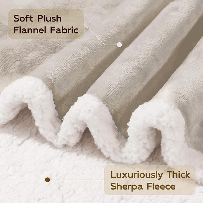 BEAUTEX Sherpa Beige Cream Fleece Throw Blankets, Soft Fluffy Flannel Plush Blanket and Throw, Fuzzy Cozy Cuddle Blankets for Couch Bed Sofa Adults (50" x 60")