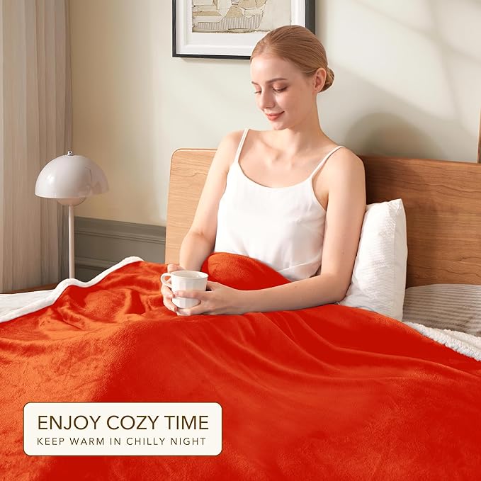 - Warmth and Comfort, the Halloween Blanket: Crafted from a blend of plush flannel and Sherpa fleece, this thick orange blanket is not only cozy but also extra warm. Whether you're curling up on the couch, watching eerie Halloween movies, or staying toasty by the bonfire, this Halloween burnt orange throw blanket is your perfect companion