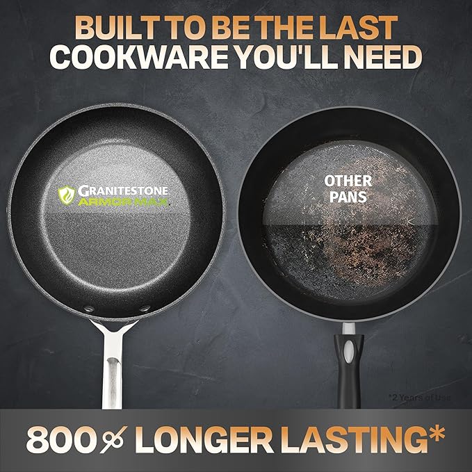 - BUILT TO LAST YEARS: Granitestone Armor Max is constructed from heavy duty, forged, hard anodized aluminum stronger than stainless steel, ensuring your nonstick cookware lasts for years on end.