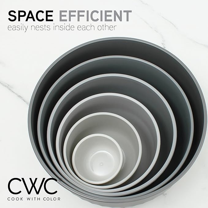 - Cook with Color 12 piece plastic mixing bowl set - non slip bowls with lids; easy to clean, sturdy mixing bowls.