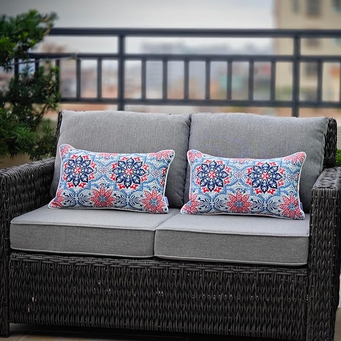 JMGBird Outdoor Lumbar Pillows Pack of 2 Outdoor Decorative Pillows with Insert Included 12×20 Inch Outdoor Pillows for Patio Furniture