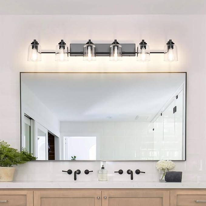 - 1.【EASY TO INSTALL】15-Minutes Easy Installation, hardwired, attach the globe to the light only, USA standard back plate. This black 6-light vanity light fixture directly connects to the reserved wire and then mounts to the wall.