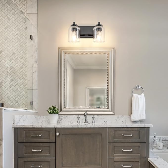 - 3.【LONG LASTING & DURABL】Solid thick glass lampshade,this vintage bathroom light features a robust all-aluminum construction, including a aluminum securing ring that firmly holds the glass shade.Advanced electroplate craft,and sealing technology. Anti-corrosion and moisture-proof, great for humid spaces like bathrooms.