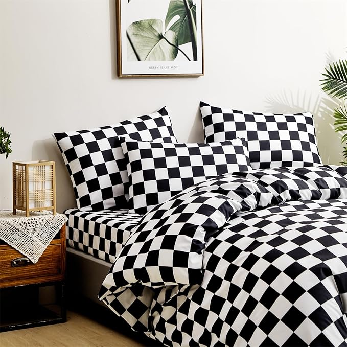 - 【Checkerboard Grid Pattern】: Simple balck white checkerboard grid pattern, not only make you feel more relax and comfortable life, but also well match any kinds of decoration styles. The black white comforter sets is suitable for bedroom, guest room, school dormitory, hotel, etc.