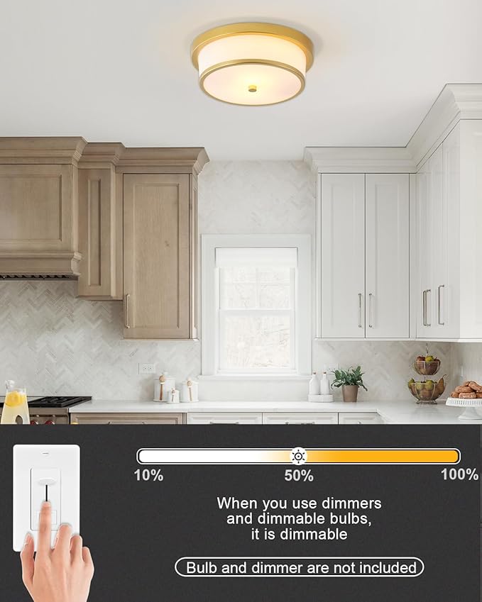- 【BULB REQUIREMENTS】The bedroom lights for ceiling has two built-in E26 medium bulb bases, which support any LED/CFL/Edison bulbs with E26 bases, (Max 60W). When you use dimmer and dimmable bulb, the kitchen light fixtures ceiling can be dimmable. (Dimmers and bulbs are not included).