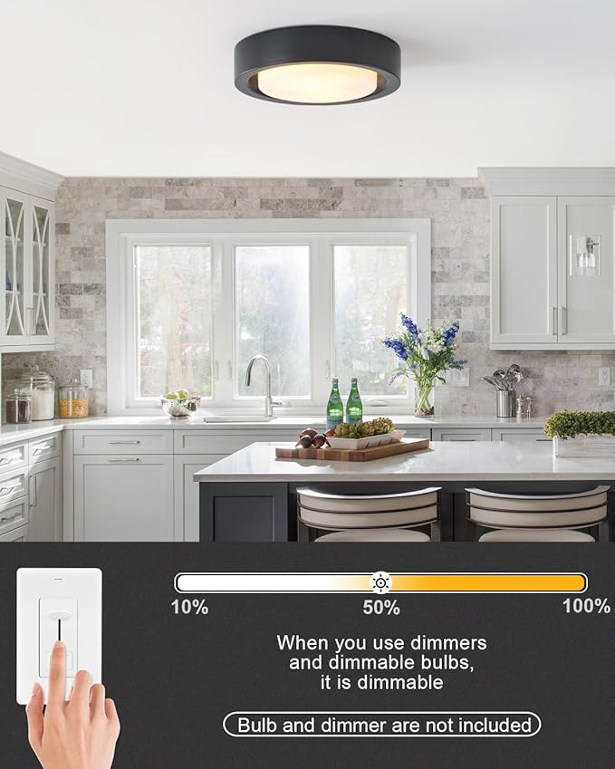 - 【E26 BASE SOCKET】The ceiling light with standard USA socket is compatible with E26 medium base bulb, such as incandescent, LED, CFL and halogen bulbs (bulb MAX 60W). This close to ceiling light is easy to maintain afterwards, just wipe with a dry cloth.