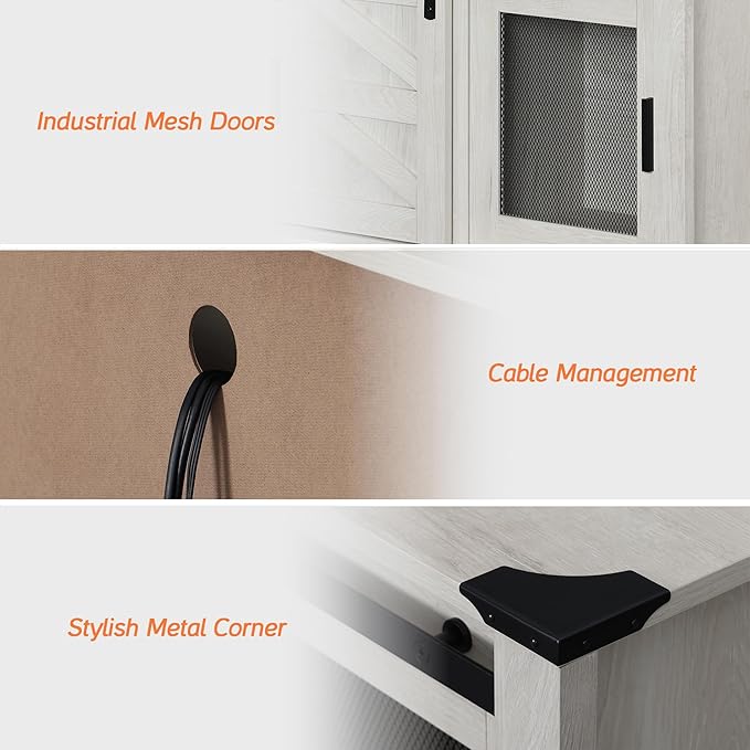 - Sliding Barn Doors:Our two sliding barn doors are designed with a special quality metal barn door pattern. Easy access to cabinets and shelves via metal track,,slide smoothly and quietly.