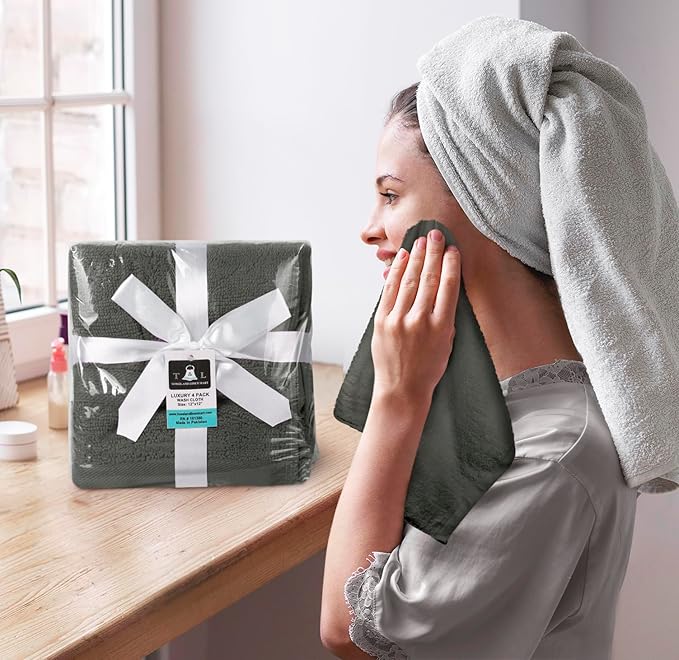Towel and Linen Mart 100% Cotton - Wash Cloth Set - Pack of 4, Quick Dry, Luxurious, Highly Absorbent and Soft Feel Premium Spa & Hotel Perfect for Daily Use (12 X 12 Grey)