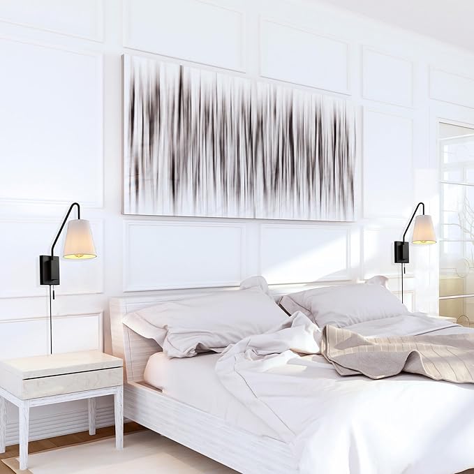 GLOBE Electric 65000043 1-Light Plug-in or Hardwire Wall Sconce, Matte Black, White Fabric Shade, Swing Arm, 6ft Black Braided Fabric Cord, On/Off Pull Chain, Wall Lights for Living Room, Home Décor