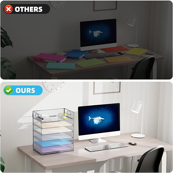 - 【MULTI-PURPOSE ORGANIZER】6-tier layered design and large capacity make the paper organizer become an ideal choice for managing all kinds of letter-size letters, paper, books, bills, etc. Let you quickly identify the contents of each compartment super easy