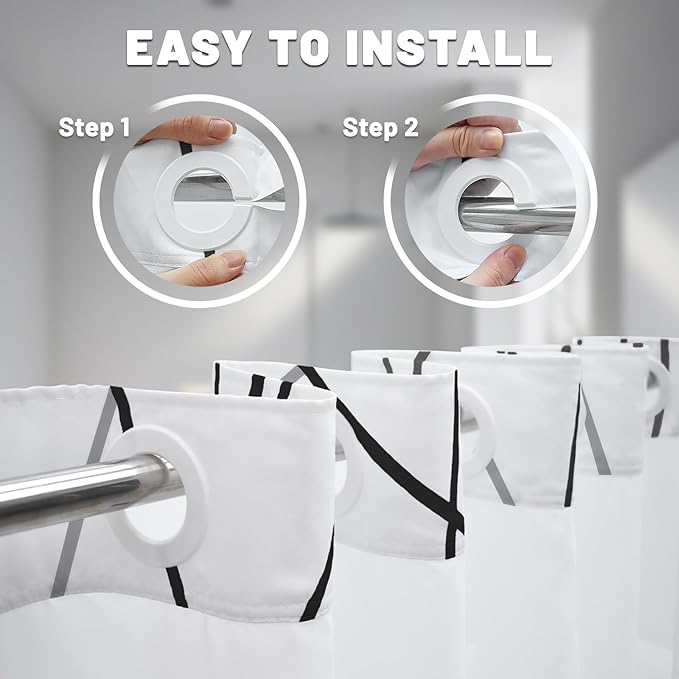 - NO Hook Design: set of shower curtain & snap on/off replaceable liner: no hooks needed design with built-in rings for easy on and off. snap-in waterproof fabric liner is removable when replacing