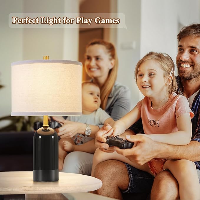 - Contemporary Ceramic Lamps: The Small lamps set of 2 are constructed of high-quality Ceramic lamp body and linen fabric drum lamp shade. This design imbues the table lamp with a modern and charming aesthetic, making it a perfect addition to various rooms such as bedrooms, living rooms, offices, and nursery rooms